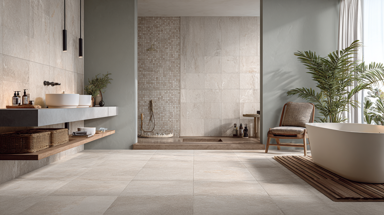 | Пол вне душа | Керамогранит, мат/структура | R10 (DIN 51130) | ≥ 0.42 (ANSI A326.3) | BIa ≤ 0.5% (EN 14411) |
